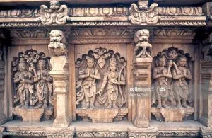 The finest wooden carving are in the temples of Tamil Nadu and the piece-de-resistance are the processional chariots for the deities, these include numerous mounts/ vahanas and small pillared shrines/ rathams for the deities. The temple woodcarvers and carpenters belong to the Kammaalar caste. Patronage of the traditional crafts demanding fine detailing has petered down, so the number of craftsmen practicing the art has decreased. Kora grass mats