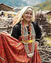 a) Pattu: Females of Bhotia tribe covered their head for the protection from sun while working and to show their respect to elders. This is rectangular piece of cotton or wool fabric which was worn over the head, so that it will cover upper part of forehead and then tied at the back of the head and is decorated with various stones like Munga and Moti.