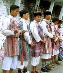 Sompa Tinyima is a kind of Sompa shoes that bears patterns of nobility and wealth; these are worn by noble women in the past. Sompa Tiri is for the working class women, Sown with thick thread and linen. The soles are made of locally hand- crafted linen. Herder’s shoes are usually made of animal’s skin and other materials unlike the Farmers, which favors woolen shoes. Monks and priests wore the Gyiachin shoes, meaning rainbow. It has a religious meaning hence worn by monks and was front closed with V-shaped deep neckline or a flat collar. It had straight front and back lower end. It was worn over the blouse (Honju) and was a sleeveless garment from which the sleeves of the blouse can be seen. Chhua was generally made from a plain coloured fabric over which a colourful striped cloth was worn which enhances the beauty of the garment.