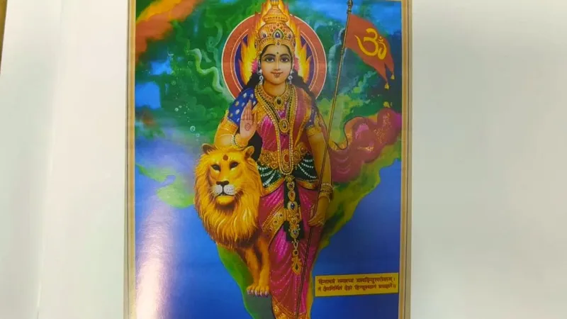 The Banarasi sari has also been associated with the symbolism of Bharatmata or Mother India, representing the nation as a goddess dressed in a militant red with yellow or gold motifs. This representation has been used in political propaganda, calendar art, and studio photography, as well as in contemporary art installations by Pushpamala N.