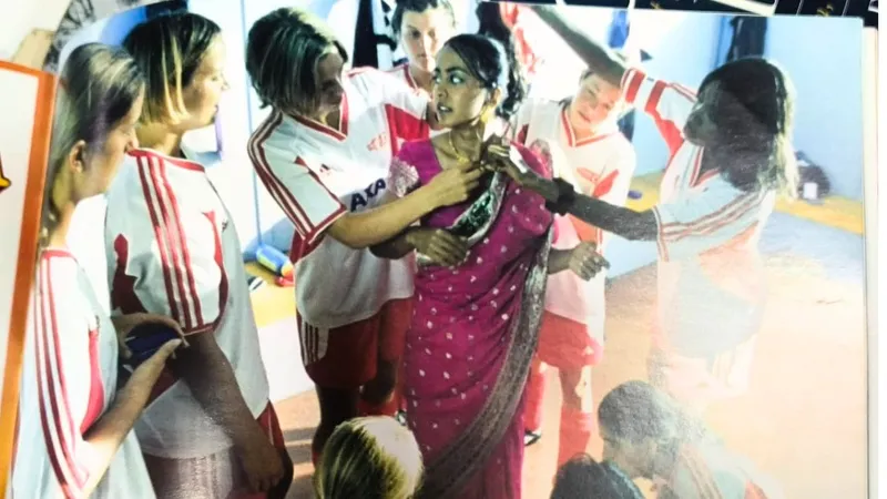 The red-and-gold Banarasi sari has been a popular subject in Indian cinema, often representing a woman's connection to her native traditions. In the film "Tapasya," the protagonist is depicted holding a red Banarasi wedding sari, symbolizing her self-sacrifice and love for her family. Similarly, in an English language film, the Indian-origin protagonist wears a pink Banarasi sari, signifying her rebellion against societal expectations while still honoring her roots.