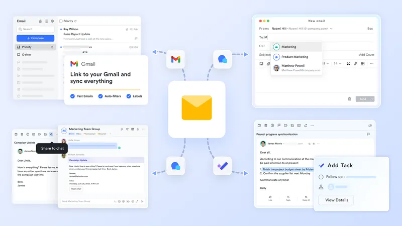 Bridging internal and external communication gaps. Most companies rely on separate tools for internal chat and external email, creating extra work to relay information between systems. Lark Mail brings email into the same workspace as team communication and workflows, reducing the need to manually transfer context between tools.