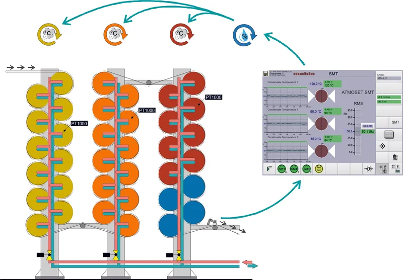 Maintaining the running cost of a plant at a low level is often the difference between profit and loss. By saving the excess energy which is normally wasted during the drying process on a drum dryer,the mill profits twice: In the first place by the simple savings of energy; and secondly, by maintaining a constant moisture level. The latest Mahlo Atmoset shows how.