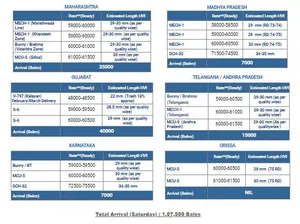 ARRIVAL BALES FRIDADY - 12.05.2023 TOTAL = 108500 BALES ARRIVAL BALES SATURDAY - 13.05.2023 COTTON PRICE TODAY - 15.05.2023 * Rate (INR) per Maund (1 Maund = 37.324 KG.)