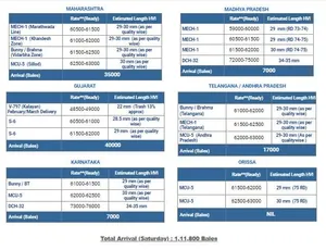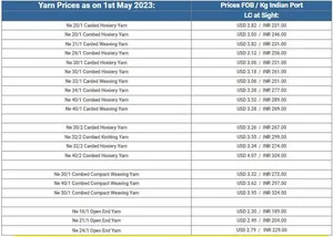 We are looking for Stocks / Surplus of all Textile Items ( Yarns, Fabrics, Garments, Home Furnishings ) Globally. ARRIVAL BALES FRIDAY - 28.04.2023 TOTAL = 1,21,500 Bales ARRIVAL BALES SATURDAY - 29.04.2023 COTTON PRICE TODAY - 01.05.2023 * Rate (INR) per Maund (1 Maund = 37.324 KG.)