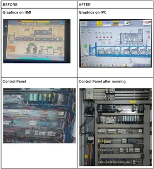 The outdated OEM Siemens HMI screen was swapped out for an IPC display, complemented by the Siemens SCADA system.