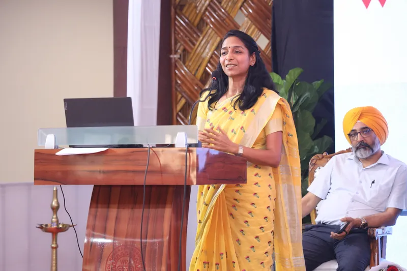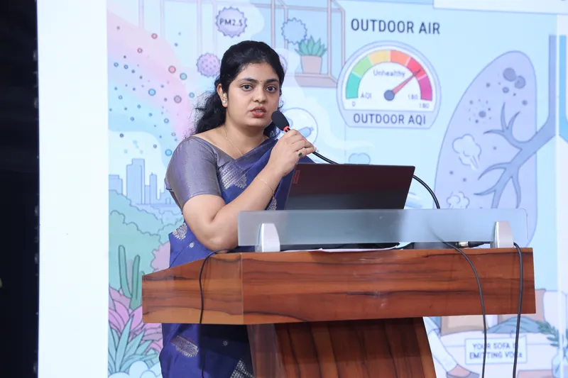 Ar. Saloni Pawar’s Fort Architects’ presentation brought an architectural perspective, focusing on “breathable spaces” and climate-responsive design. She emphasised the integration of sustainable materials like wool into built environments to enhance occupant comfort and environmental harmony. Through examples of context-sensitive projects, the talk highlighted how design innovation, biomimicry, and material choices can create healthier, energy-efficient, and community-centric spaces aligned with local ecosystems and cultural contexts.