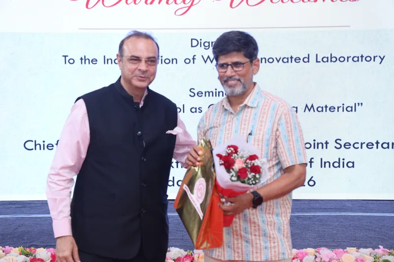 Ms Padmini Singla, IAS, Joint Secretary, Ministry of Textiles, addressed the stakeholders present during the event. She appreciated the efforts of the Wool Research Association in promoting innovation and sustainable applications of wool. She highlighted the importance of leveraging natural fibres such as wool in green construction and energy-efficient buildings. During her address, she announced the recognition of the Wool Research Association (WRA) as a “Centre of Excellence for Wool”, acknowledging the organisation’s long-standing contribution to research, technology development and industry support in the wool sector. This recognition is expected to further strengthen WRA’s role in advancing research, skill development and innovative applications of wool for sustainable industrial and environmental solutions.