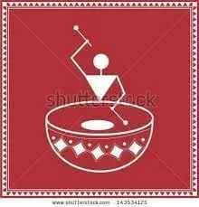 "The crop is ready for harvest and fields of rice paddy are swaying in the gentle breeze of autumn. The village folk are anxious to harvest their produce. The rivers are full, and stocked with fish. The hunters have returned with two plump wild boars and the women folk are busy preparing for the night`s feast. Men and women join hands and hop along shoulder to shoulder in concentric circles matching the rhythm of the drum and the ghumroo. The people drink "Mahu Dharu", made from the fruit of the Mahua tree, which grows abundantly in this part of the Western Ghats." This is how Anil Vangad a Warli artist visualises his village during the harvest season. Anil comes from Ghanjaad, a tiny village of only five hundred families in the Thane district of Maharashtra. Subjects of Painting The typical subjects on whom Warli Art is done are: 1.Festival 2.Harvest 3.Folk story 4.Celebration Temple Marriage It basically consists of geometrical patterns Circle: represents sun and moon. Triangle: depicts mountains ,pointed trees and Human beings. Square: depicts a sacred enclosure or a piece of land. So the central motive in each ritual painting is the square. The colours used by Warlis are not permanent but the paintings were made again on different occasions. Typical Warli paintings background colours are Henna, Indigo, Ochre, Black, Earthy mud and Brick red.Typically Warlis paintings are simply painted on mud, charcoal and cow dung treated surfaces with rice paste for white colour.These paintings do not show pictures of gods and goddess but shows social life. Images of human beings and animals, along with scenes from daily life are created in a loose rhythmic pattern. Painted white on mud walls and usually depict scenes of human figures engaged in activities like hunting, dancing, sowing, harvesting, going out, drawing water from well, drying clothes or even dancing.