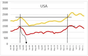 Our basic tenet assumption is that, under any circumstances prices reflect demand levels. They begin to decline rapidly when demand shrinks and as a consequence, values across the textile chain start collapsing to touch new lows. And when prices start moving up, it is only because demand begin to look up to revive and then rebound, whatsoever the measures are taken to revive the economic growth. We reiterate that demand for textile is strongly correlated with income level and its growth while price is only a reflection of demand. Thus, movement in prices will provide basic clues of the potential revival in demand and the duration of descending and ascending of prices. This means, the point of time when prices start falling and touch the low from where it begins to reverse and the time to come back to the levelsfrom where they began their downward journey.