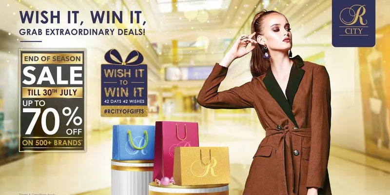 Mumbai, 11th June 2023- Brace yourself for an incredible shopping experience as R CITY’s highly anticipated End of Season Sale is finally here. Prepare to immerse yourself into a world of massive discounts, where you can enjoy up to a staggering 70% off on over 500 renowned brands. Whether you want to refresh your wardrobe, re-decorate your home or upgrade your electronics gadgets, the EOSS sale has something for everyone. This is a great opportunity to snag some amazing deals on clothing, footwear, accessories, decor items, gadgets and much more from various top brands like Lifestyle, Marks & Spencer, Nautica, Vero Moda, Croma, Homecentre, Guess, Mango amongst others. Moreover, along with incredible offers and deals, the mall is also providing its shoppers with an opportunity to fulfill their wishes via its ‘WISH IT TO WIN IT’ zone where on a minimum purchase of Rs. 10,000, one can participate and stand a chance to win a wide range of high-value prizes such as iPhone, MacBook, Dyson products and much more! So, shoppers head to R CITY this July, pamper yourselves, enhance your lifestyle and make the most out of this End of Season Sale! When: Ongoing till 30th July 2023 Where: R CITY Mall, LBS Rd, Amrut Nagar, Ghatkopar (W) About R CITY Mall Since 2009, R CITY, the flagship retail venture of Runwal Developers Pvt. Ltd. has been welcoming visitors as Mumbai’s biggest shopping and leisure destination. Nestled in the heart of the central suburbs, it extends across 1.2 million square feet of retail space and is home to 300+ Indian and International brands across Fashion, Food, Beverage and Entertainment. The mall boasts of a 24,000 sq. ft. courtyard - the perfect venue for city level events like musical gigs, stand-up performances, food fests and more. It’s also the largest recreation hub of the city with over 9 entertainment centers including India’s first and largest indoor theme park – Kidzania and various new age experiential brands in entertainment and leisure along with 14 anchor brands to give visitors a truly international shopping experience. R CITY also has the first and only in-mall format of IKEA in India which spans across 72,000 sq. ft. With a balanced offering of the best in shopping, entertainment and food, R CITY provides an engaging and unforgettable experience to its shoppers and visitors.